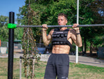 Le gilet lesté StreetGains 20 kg est un gilet lesté court et compact. Il ne restreint donc pas la liberté de mouvement de l'athlète. Il mesure 30 centimètres de large et 39 centimètres de long. Il est également doté de bretelles étroites, permettant d'étendre facilement les bras au-dessus des épaules, par exemple pour les appuis sur les mains ou les tractions. Le système de sangles FastFit permet un enfilage rapide et facile. « Enfilez, c'est parti ! » Ce système de sangles garantit également que le gilet ne bouge pratiquement pas lors des mouvements explosifs et reste bien en place même suspendu à l'envers. Ces caractéristiques font du gilet lesté StreetGains 20 kg le choix idéal pour la callisthénie, le CrossFit, le bootcamp, le fitness et les exercices d'agilité.