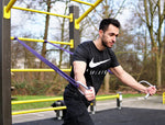 Das StreetGains Muscle-Up Pack hilft dir Schritt für Schritt auf dem Weg zum perfekten Muscle-Up. Der Muscle-up ist eine beeindruckende Körpergewichtsübung, die häufig beim Crossfit und bei Calisthenics ausgeführt wird. Du beginnst die Übung, indem du dich über die Stange ziehst. Anschließend drückst du deinen Körper nach oben, indem du die Arme streckst. Die Übung besteht also aus einer Druck- (Push) und einer Zugbewegung (Pull). Dadurch wird der gesamte Oberkörper trainiert. Um den Muscle-up auszuführen, benötigen Sie eine Klimmzugstange oder einen Satz Ringe. Beginnen Sie mit dem grünen Widerstandsgurt und arbeiten Sie sich zum roten Gurt vor. Wenn Ihnen die Muscle-ups mit dem roten Gurt gelingen, können Sie es ohne Gurt versuchen! Bevor Sie mit dem Muscle-up beginnen, müssen Sie jedoch in der Lage sein, eine Reihe von Klimmzügen auszuführen. Hierfür können Sie das StreetGains Pull-Up Pack verwenden.