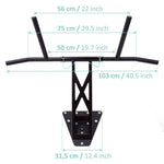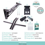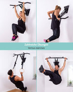 Führen Sie mehr als 20 Übungen durch, darunter Klimmzüge, Dips, Beinheben und Muscle-ups (mit der optionalen geraden Stange). Befestigen Sie sie an einer Wand für eine stabile, permanente Trainingslösung oder verwenden Sie das Bandsystem für eine tragbare Outdoor-Installation. Das clevere Design der Stange sorgt für einfache Montage, Langlebigkeit und Tragbarkeit – ideal für Fitnessbegeisterte zu Hause und im Freien.
