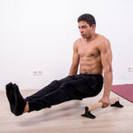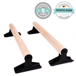 La poignée ergonomique en bois des parallettes basses offre une prise en main parfaite pendant l'entraînement.